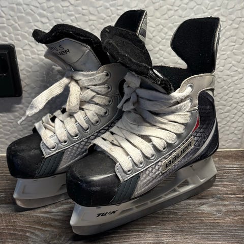 Bauer jääkiekkoluistimet lasten koko 35. Luistimissa on musta väri ja ne on suunniteltu jääkiekon harrastamiseen. Malli Supreme 1000. Suojat tulevat luistinten mukana.