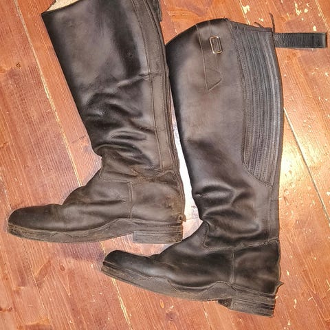VARATTU Annetaan talviratsastussaappaat. Kuvassa näkyy, että on likaiset ja pieniä kulumajälkiä on, mutta näillä kyllä ratsastaa vielä monta talvea. Koko 39. Haku Turusta