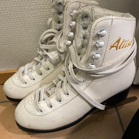Käytetyt, mutta silti hyvässä kunnossa ja terässä olevat luistimet koko 36. Sisäpituus n. 21.5cm. Sisäpuolelta ehjät samoin nauhat ja kiinnikkeet. Toisessa luistimessa kärjessä pikku vekki (ks. kuva).