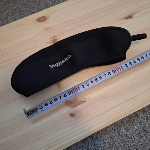 Käyttämätön neopreenimateriaalia oleva tähtäinsuojus, joka on käännettävissä (camo tai musta, vetolenkit molemmilla puolilla). Suojuksen mitat näkyvät mittanauhassa kuvissa, pituus siis 32 cm.
