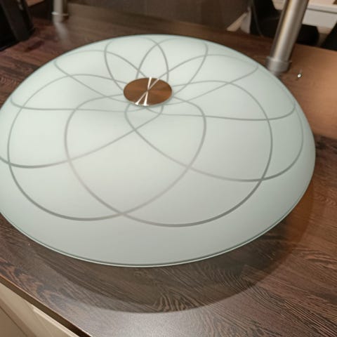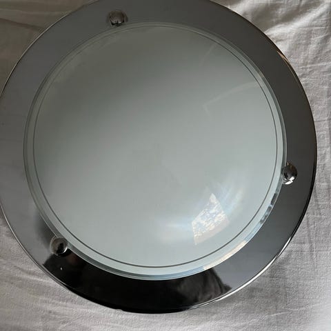 Kuvien mukainen kattoplafondi uusio käyttöön. Halkaisija 48cm, lamput 3 x E27 eivät mukana. Mukaan uusi kattopistoke. Nouto Rantakylästä. H. 15e