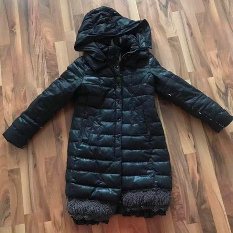 Sopii henkilölle, jolle nämä viat ja käytön jäljet eivät ole este, ja joka etsii kevyttä, pitkää untuvatakkia.
