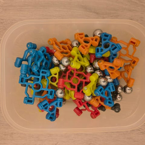 Monivärinen magneettinen rakennussarja. 30 magneettipuikkoa ja 30 kuulaa. Yhteensopiva muiden tavallisten magneettisten rakennusarjojen kanssa. Ohjekirja. Kaikki osat tallella.