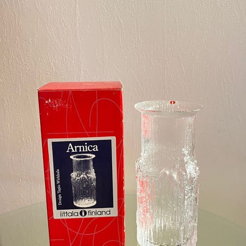 Myydään Tapio Wirkkalan Iittalalle suunnittelema kaunis ja tyylikäs Arnica -maljakko. Korkeus n. 14 cm ja halkaisija ylhäältä n. 12 cm. Maljakko on ehjä, vitriinissä säilytetty ja erinomaisessa kunnossa. Vain nouto. Mobilepay tai käteinen