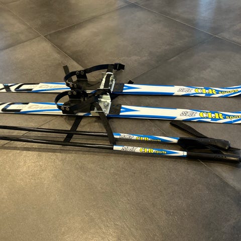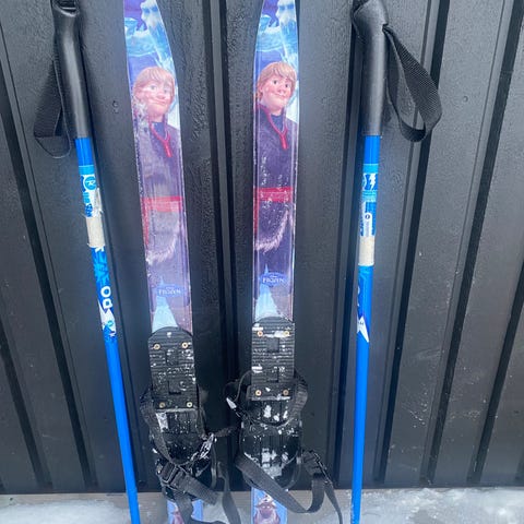 Myydään lasten ensi sukset ja sauvat. Monoka ei tarvitse vaan siteeseen menee talvikengät.