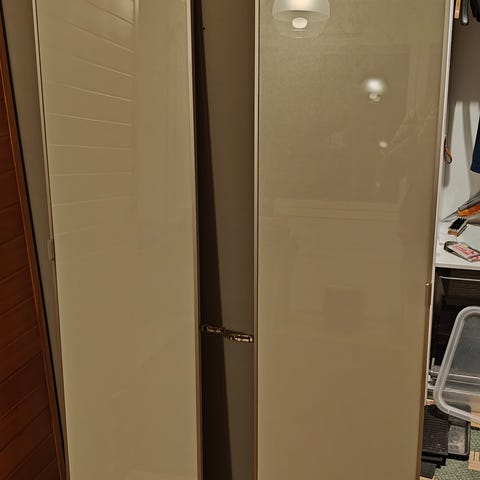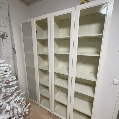 Myydään Ikean Billy/Oxberg kaappikokonaisuus (kaksi kaappia). Kokonaismitat 160cm x 202cm x 30cm