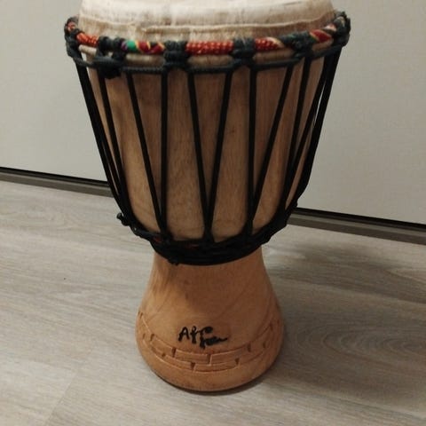Myynnissä vanhempi(n. 25-30vuotta), mutta täysin käyttökunnossa oleva Remon Djembe(mukana säätöavain). Kulumaa vähän joka puolella. Mitat rummun halkaisija 40cm ja korkeus 69cm. Hinta uutena tällä hetkellä n. 700€.