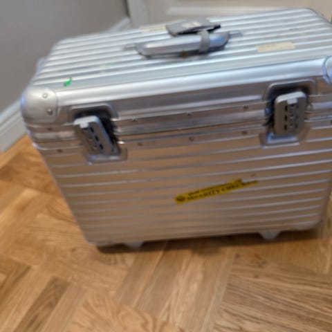 Myydään Rimowa L kokoinen matkalaukku. Laukussa on kaksi pyörää kts. kuva.