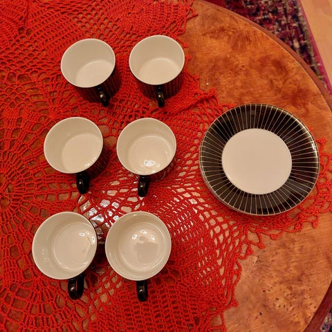 5 kpl kuppia ja 6 kpl aluslautasta