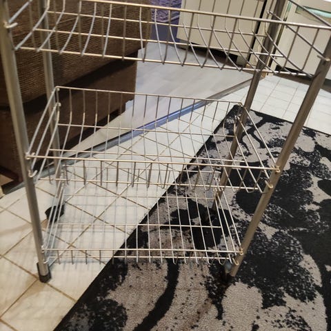 Yksi hylly ja hyllykannake puuttuvat (eivät kuvassa).