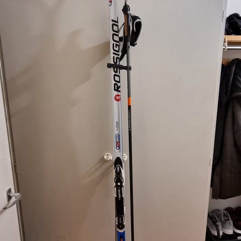 Fischer RCS Sprint pitopohja sukset 160cm, Rottefella NNN siteet, Exel sauvat 125cm ja pidikkeet, yht 62e.