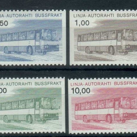 Postimerkkisarja, joka sisältää neljä erilaista merkkiä. Merkkejä käytetty kuljetus- ja bussiliikenteen teemalla. Värit punainen, sininen, harmaa ja vihreä. Soveltuu postimerkkikokoelmiin tai filateliaan.