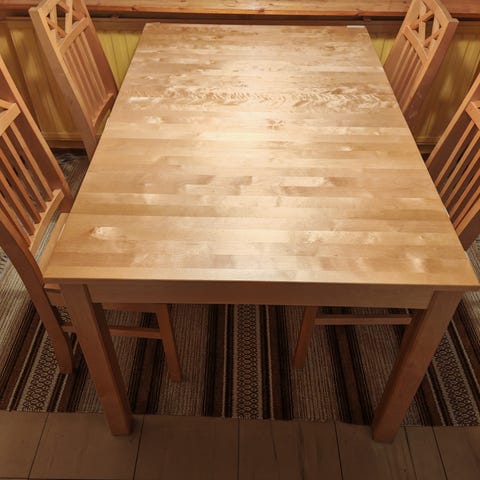 Kaksi jalkaa irronnut lasilevystä. Korjattu epoksiliimalla vuosi sitten ja on pysynyt kasassa.