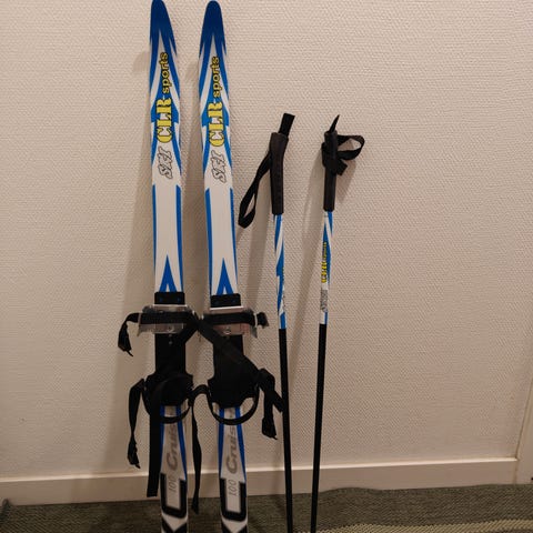Sukset 130 cm ja sauvat 100 cm