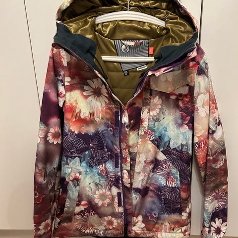Volcomin keltainen lasku/toppatakki. Käytetty, mutta edelleen siisti.