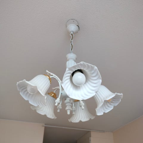 Kaunis, värikäs kattokruunu. Osat on muovia. Lampunkannat E14. 6 lamppua menee. Hyvässä kunnossa. Nouto Kirkkonummelta.