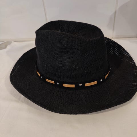 Näyttävä punainen huopahattu koko n 56cm musta kiristenauha jossa linnunsulkia,käyttämätön ostettu hattu liikkeestä.
