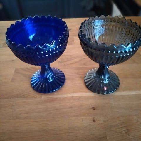 Iittala koristekulhot, valmistettu lasista, värit sininen ja vihreä. Kulhot ovat koristeellisia ja soveltuvat sisustuskäyttöön.