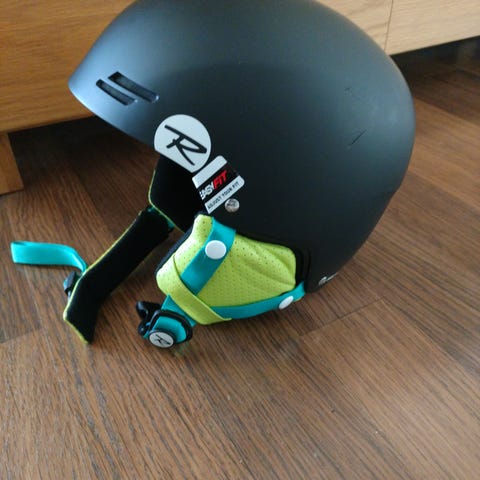 Laskettelukypärä, Tecno pro. Pään ympärysmitta 53 cm. Kypärästä puuttuu yksi koriste- elementti