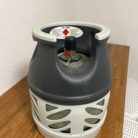Nestekaasupullo, tilavuus 11 kg, muovisuojuksella varustettu. Pullo soveltuu nestekaasun säilytykseen ja käyttöön erilaisissa kotitalous- ja vapaa-ajan laitteissa.
