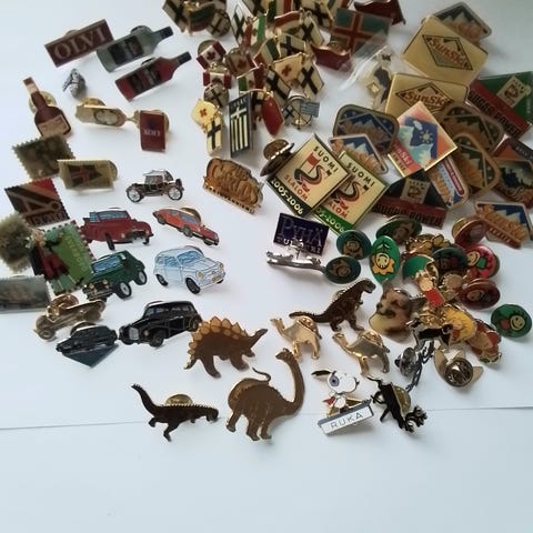 Pinssit ovat vuosikymmeniä vanhoja. Kaikki ovat ehjiä. Hinta koskee kaikkia yhteensä. Katso myös muut kohteeni. Nouto Tampereen keskustasta tai postitus 2,75 euroa.