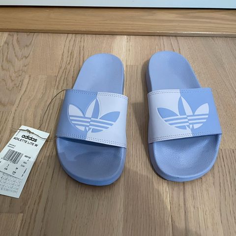 Uudet Adidas Adilette sandaalit koko 42. Sisämitta noin 26 cm. Väri vaaleanliila, hopeiset raidat.