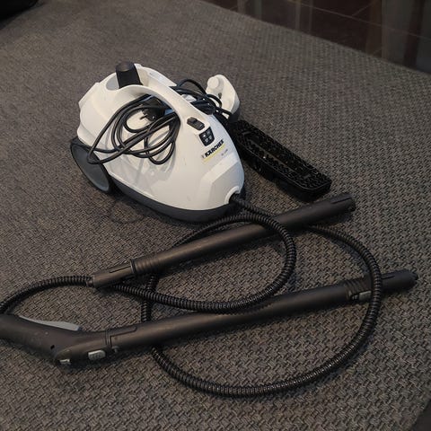 Kärcher SC 1 höyrypuhdistin valkoisella värillä. Laite soveltuu erilaisiin puhdistustehtäviin höyryn avulla. Vähän käytetty.