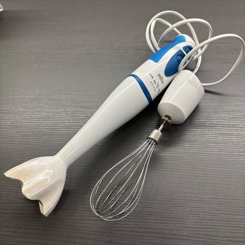Braun 300 Watt sauvasekoitin valkoisella värillä. Soveltuu monipuoliseen ruoanlaittoon ja sekoittamiseen keittiössä. Puhdas ja ehjä.