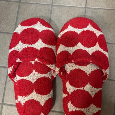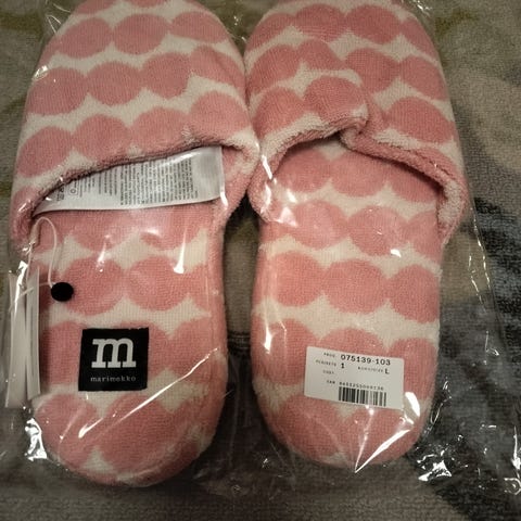 Uudet käyttämättömät Marimekko Räsymatto kylpytossut koko L. Koko noin 44/45. Froteeta ja kumipohja.