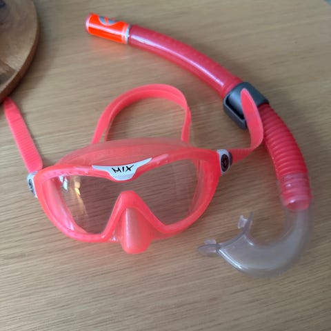 Lasten snorkkeli ja maski setti, hyvässä kunnossa, pehmeä suukappale ja maskisilikonikehys.