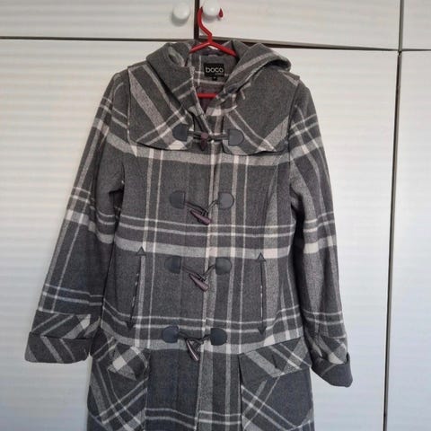 Pitkä harmaa takki. Irroitettavalla vuorella. Isompi koko.