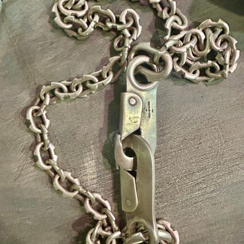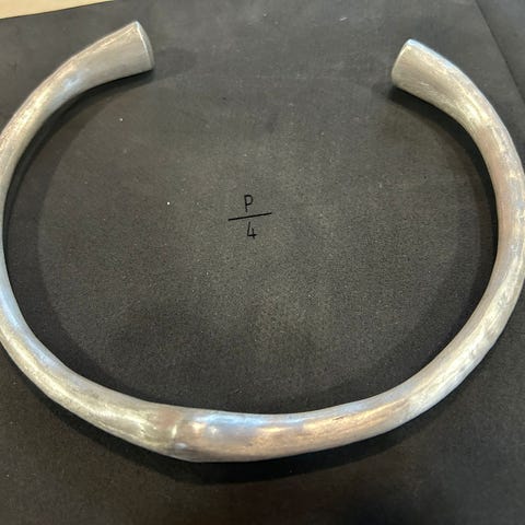 Uniikki numeroitu, toteemin materiaali "dirty brass", ketju 925 hopeaa. Ovh. 900€. Ketjun pituus n. 76 cm. Parts of Four:in nettisivuilla vastaavia mutta keihäänkärkiä ei varmaan ole enää saatavilla.