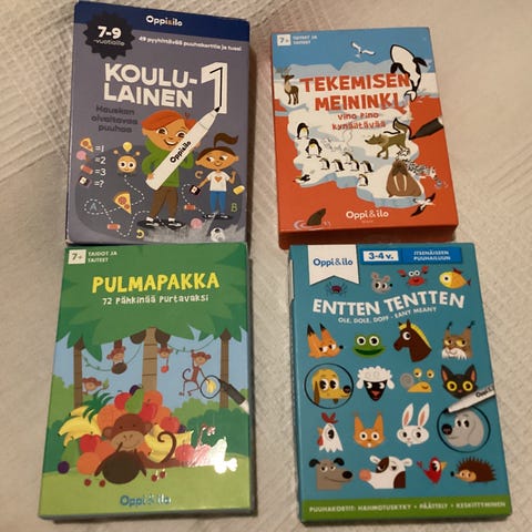 Oppi ja ilo -sarjan Minä oivallan -tehtäväkortit. Kaikki kortit tallessa. Kunto tosi siisti. Ainoastaan laatikon pohjassa pientä kulumaa.