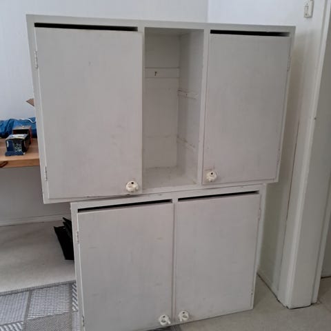 Vanha kaapisto. Puuta. Purettu varmaan keittiöstä ja ollut kellarissa pitkään. Ylimääräisenä.