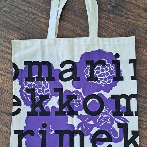 Myydään uusi Marimekon logokassi. Väri: puuvilla,punainen,viininpun.