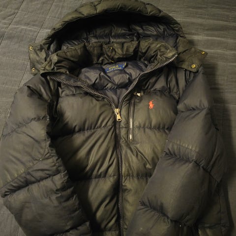 Ralph Lauren Polo M -kokoisille miehille suunniteltu musta untuvatakki. Takki on valmistettu untuvamateriaalista, joka tarjoaa lämpöä ja keveyttä. Takissa on vetoketjukiinnitys ja brändin logo rinnassa.