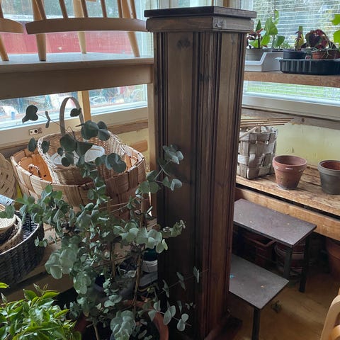Koska materiaali on marmoria, on pylväällä painoakin. Korkeutta 76 cm.