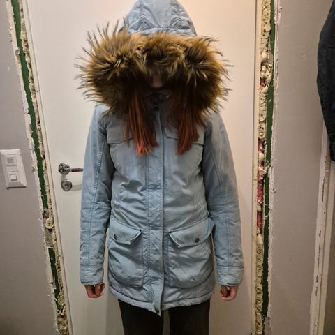 Takki on hyvin tuulenpitävä. Päällinen on 100% :sta puuvillaa. Vuori kangas 100%: en polyesteri ja täytteenä takissa on vanua.