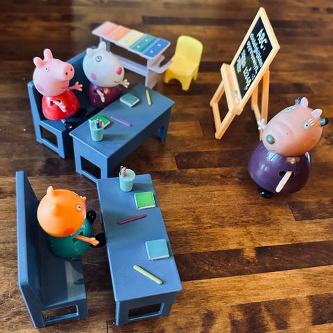 Pipsa Possu eläinlääkäri leikkisetti sisältää lääkäritalon, Pipsa-lääkärihahmon, kilpikonnan ja leikki-röntgen-laitteen kilpikonnalle, kultakalan ja Lotta-lampaan.