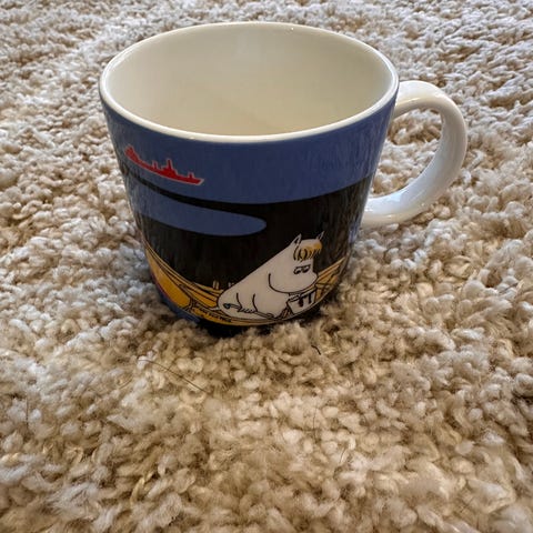 Arabian Rannikkomme-muumimuki tarrojen kanssa.