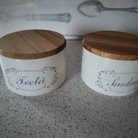 Lähes käyttämättömät, kauniit Pentikin purkit korkki-kansilla. 2 kpl yht. 14e, yksittäin 8e kpl