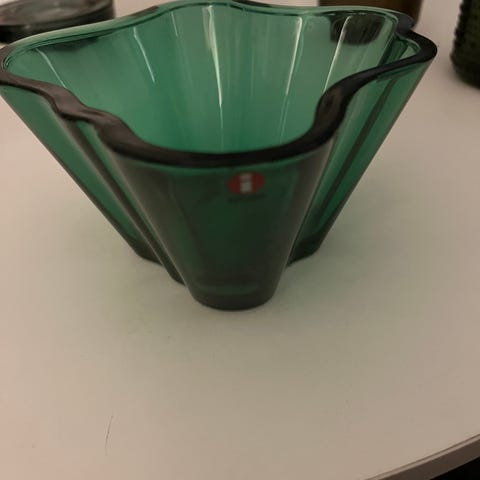 Myynnissä harvoin saatavilla Iittala Aalto Bowl 75mm Smaragdi. Ollut ainoastaan vitriinissä koristeena eli täysin uuden veroinen kunto. Tarrat paikallaan.