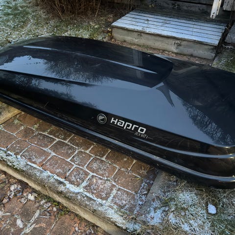 Hapro Zenith, musta kattoboksi telineillä.