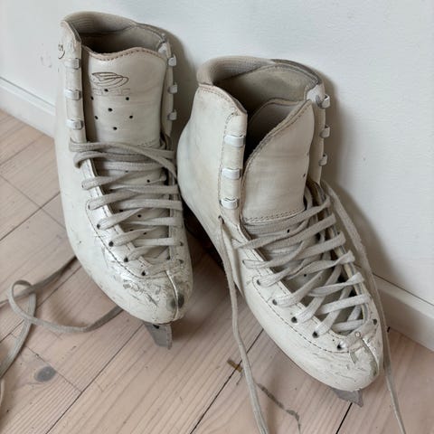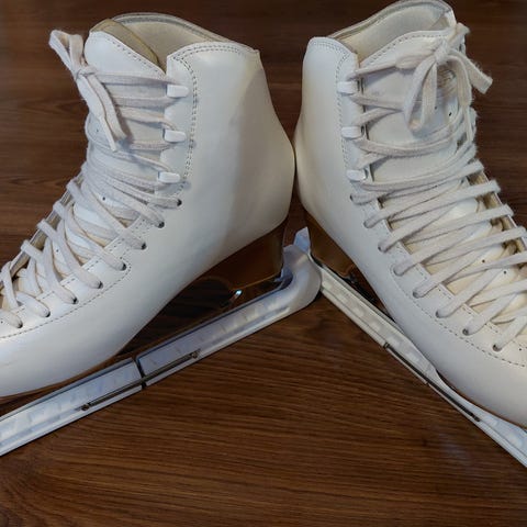 Käyttämättömät taitoluistimet, yksöis- ja kaksoishyppyihin tai noviisitason muodostelmaluisteluun.