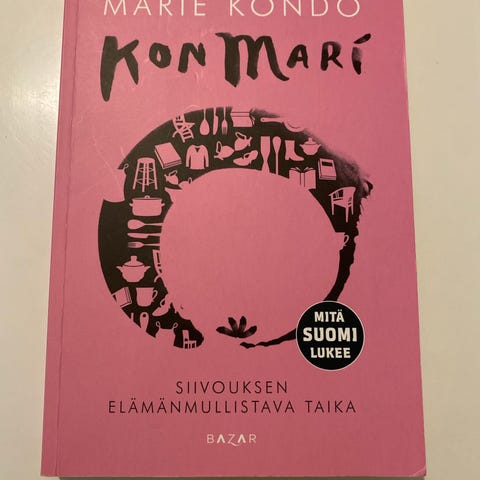 Marie Kondo KonMari Iloa säkenöivä järjestys on kirja, joka käsittelee järjestämisen ja siivoamisen menetelmiä.