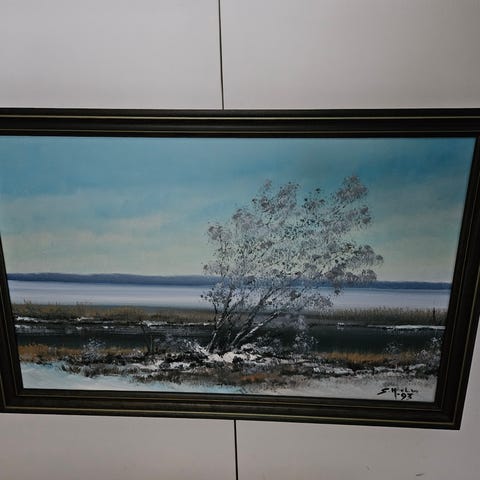 76x66cm talvinen maalaismaisema