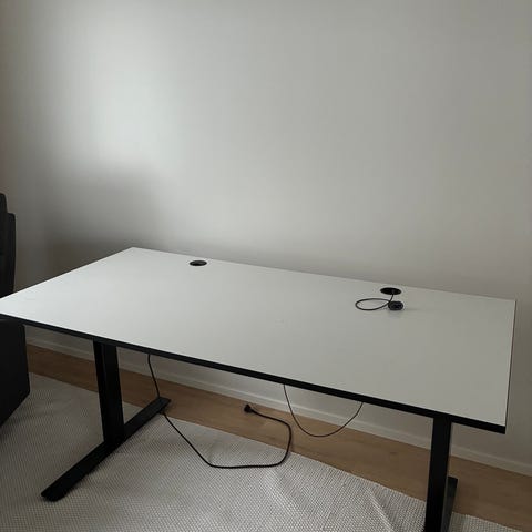 Hyväkuntoinen sähköpöytä. Manuaalinen säätö, muistipaikat ja korkeusnäyttö. Portaaton säätö noin 60-125 cm. Törmäyksenesto.