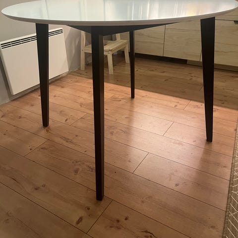 Myydään pyöreä Jyskistä ostettu Jegind-ruokapöytä. Siistissä kunnossa. Halkaisija 105cm. Mukaan uudet vaihtojalat. Vain nouto. Tarjoa!