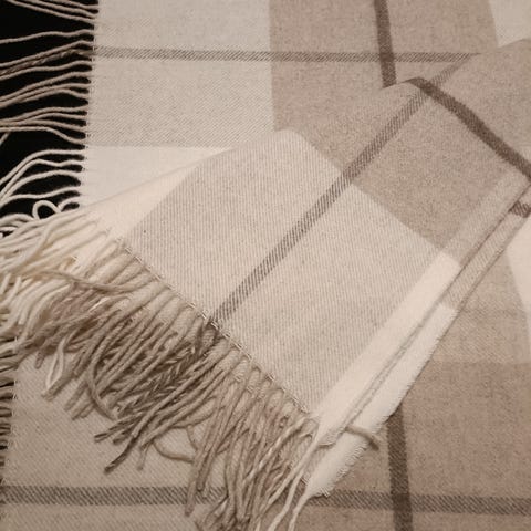 Pehmeä harmaasävyinen villapeitto, jossa materiaali 70% erittäin hienoa merinovillaa, 5% kashmirvillaa ja 25% akryylia. Peitto on kevyt, lämmin ja kooltaan 130x190cm.