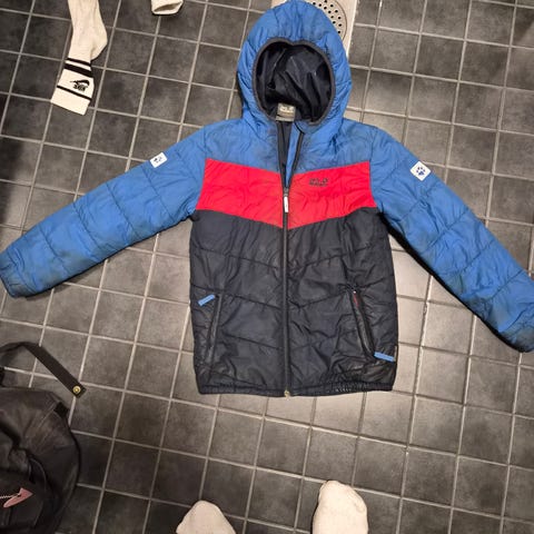 Takki ehjä ja muutamaa pientä tahraa lukuunottamatta siistissä kunnossa. Kevyesti topattu.